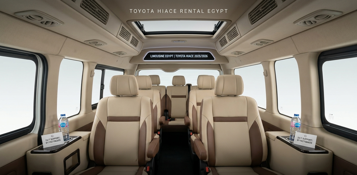 When planning a trip to the land of the Pharaohs, transportation is the backbone of your experience. Limousine Egypt provides the top-tier Toyota Hiace 2025, featuring 13 comfortable seats and high-performance air conditioning. بالتالي we ensure that your journey from the moment you land is seamless, professional, and luxurious. Our fleet is specifically curated to meet the needs of large families and tourist groups who demand safety and style.
